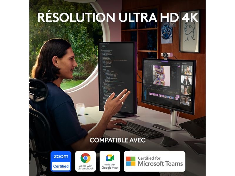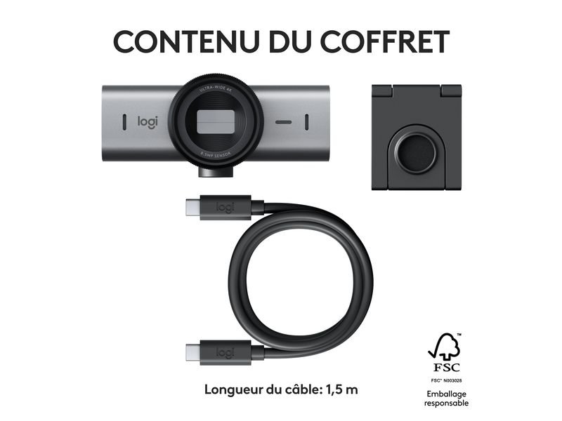 - Qualité Ultra HD 4K – Le capteur avancé de la webcam permet de réaliser des réunions ou de diffuser en 4K à 30 ips ou en 1080p à 60 ips.