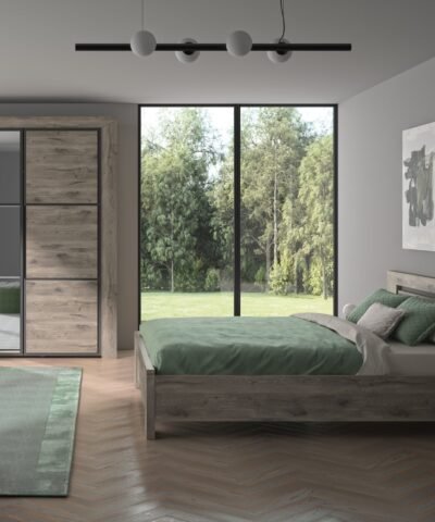 Armoire 3 portes – Chêne brun viking Marron – BRUGGE 3 portes battantes dont 1 porte avec miroir, positionnable en partie centrale ou à droite.