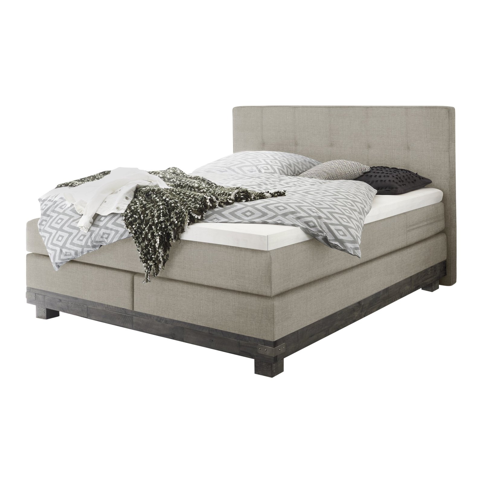 Lit boxspring Boston Hasena 160×200 cm Beige / Gris