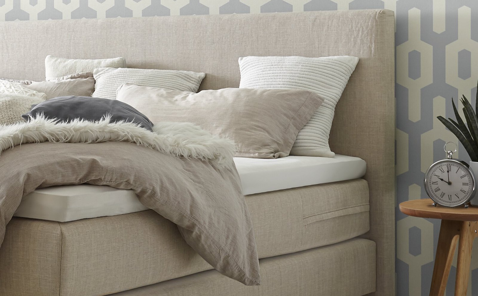 Lit boxspring Costa Hasena 140×200 cm Beige / Brun