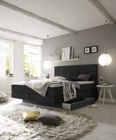 Lit boxspring incl. espace de rangement Miami Hasena 160×200 cm Anthracite