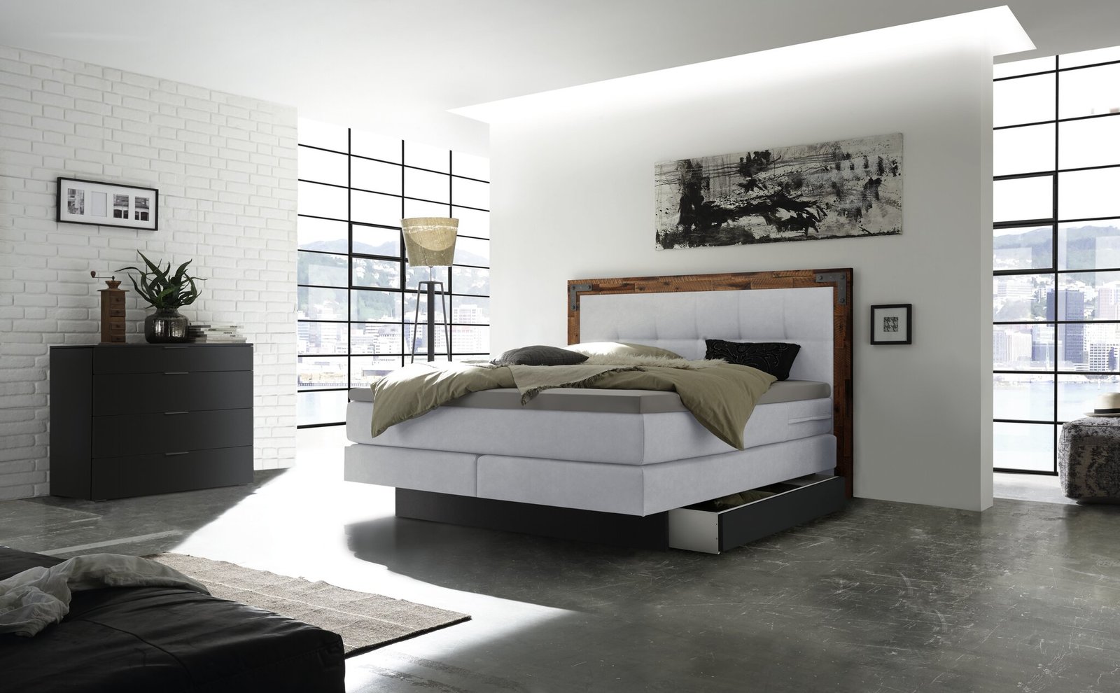 Lit boxspring incl. espace de rangement Nevada Hasena 160×200 cm Blanc / Brun