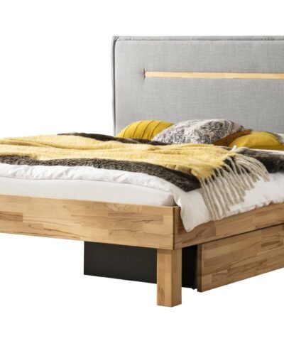 Lit Anna Hasena Hêtre coeur rouge bois massif 390-Alpina lightgrey 160×200 cm Gris / Brun