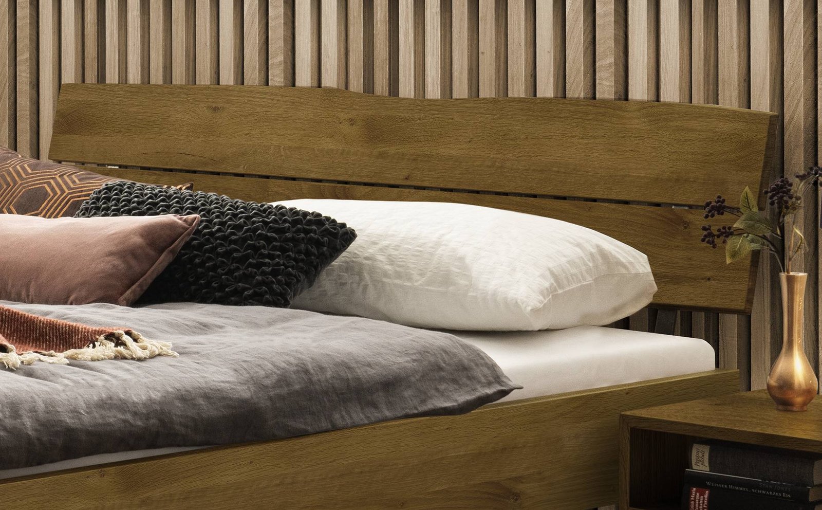 Lit Arezzo Hasena Chêne bois massif 140×200 cm Anthracite / Brun