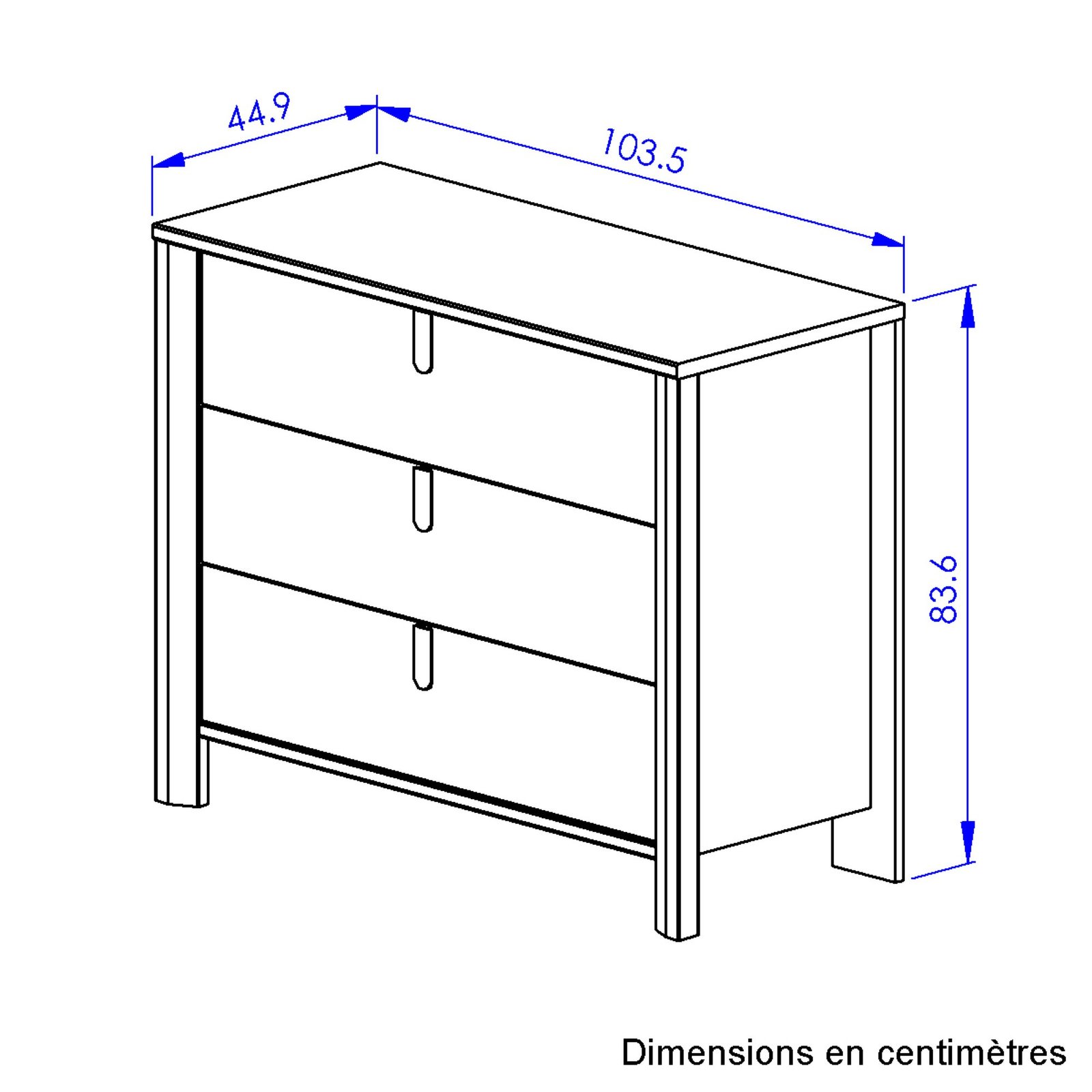 Commode 3 tiroirs LUGANO Chêne artisan 104×45 – . . . . . . . .