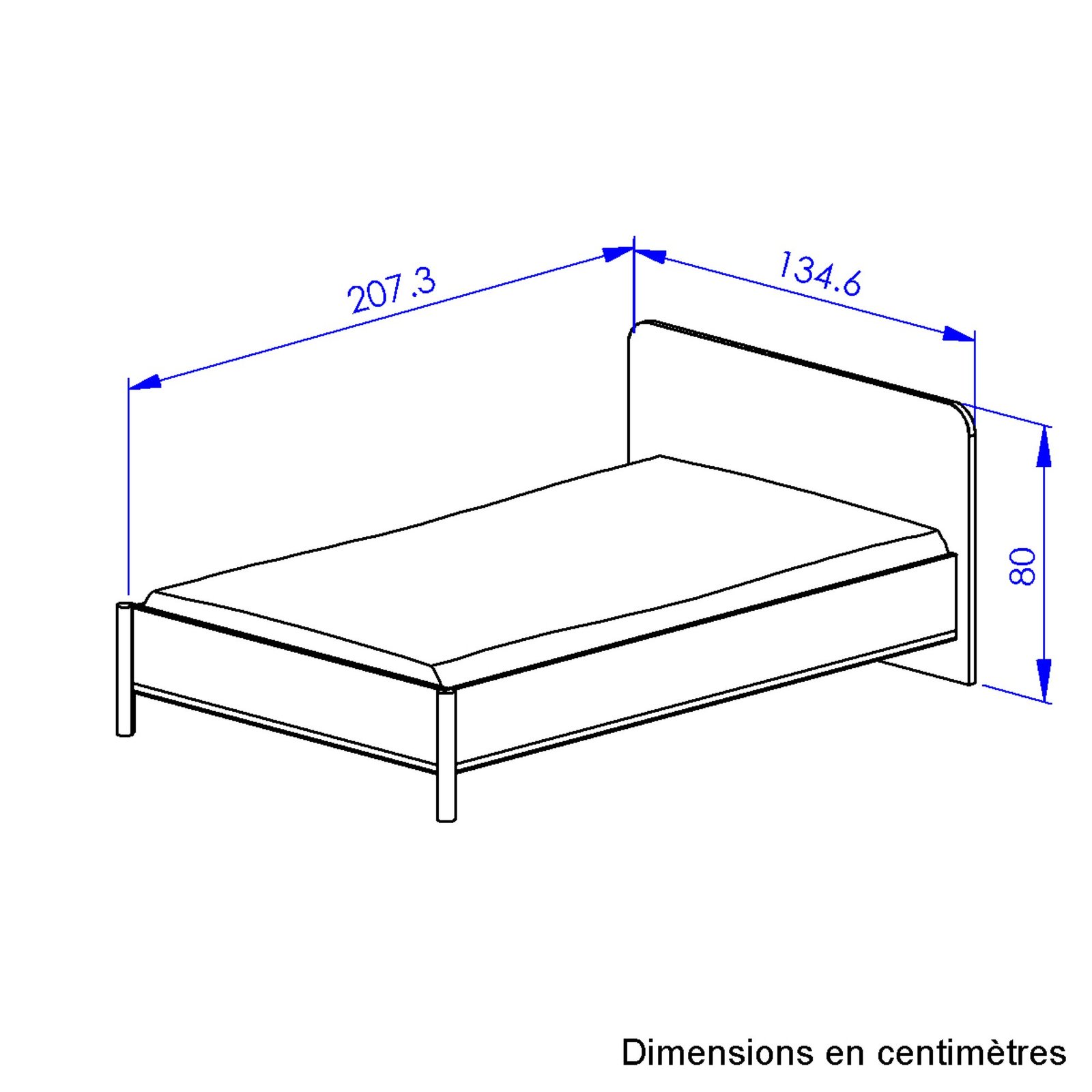 Lit simple Existe en plusieurs dimensions de couchage : 90×190, 90×200, 120×190, 120×200 Sommier et Matelas non inclus. Tête de lit épaisseur 25 mm, avec découpes arrondies des angles hauts Sommier non inclus