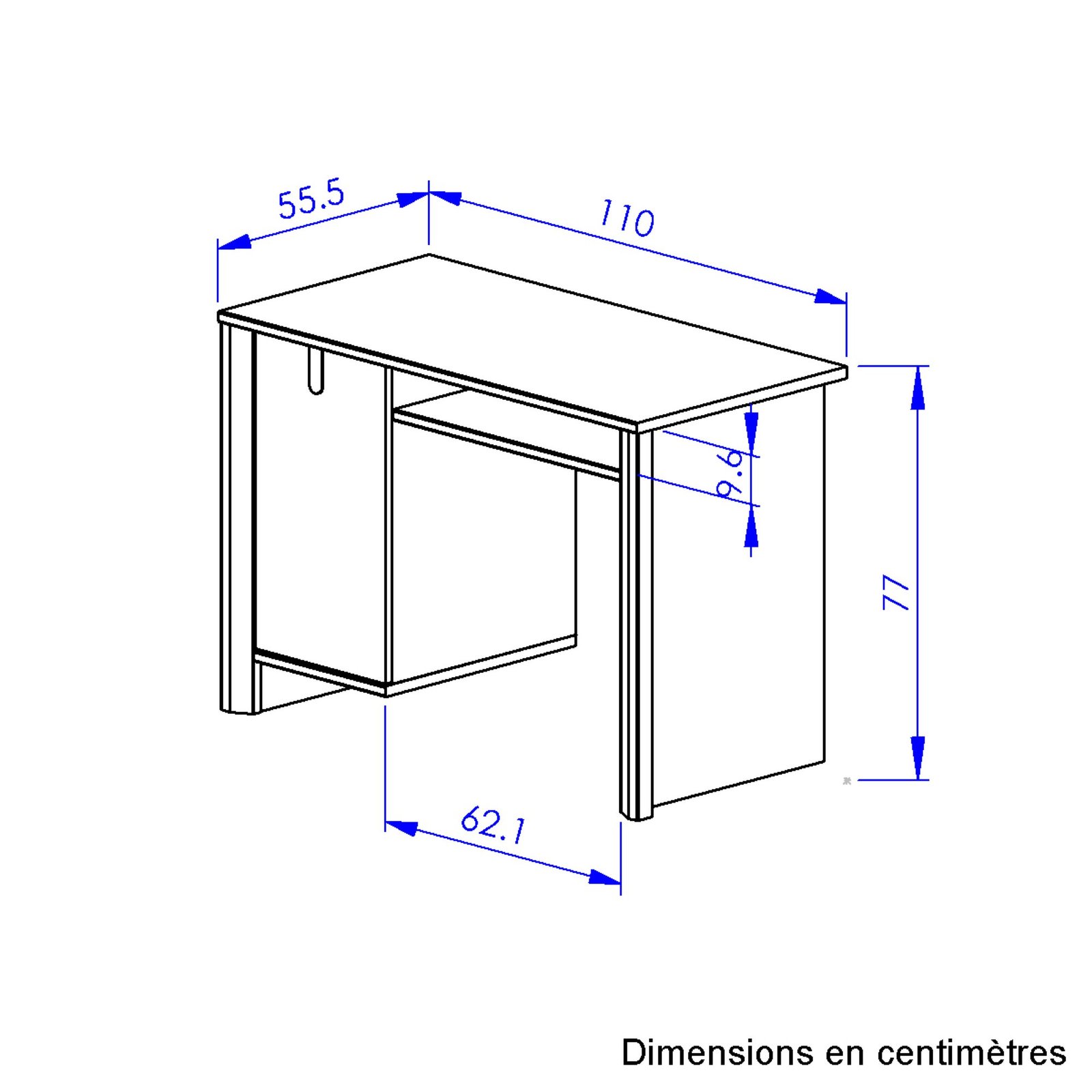 Bureau 1 porte 1 étagère, 1 tablette, 1 voile de fond