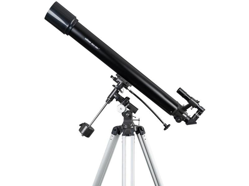 Le réfracteur Wega 1000 de Dörr offre aux débutants ambitieux et aux astronomes amateurs confirmés un équipement complet et exhaustif pour leurs observations astronomiques. Avec son trépied stable en aluminium et sa monture parallactique EQ-2, il assure un suivi calme et précis dans le ciel. Le réfracteur de 90 mm et la longueur de 1000 mm permettent un grossissement de 40 à 332 fois – vous pouvez ainsi observer en détail les anneaux de Saturne ou Jupiter et ses lunes. Le chercheur fourni, les trois oculaires de haute qualité et la lentille achromatique 2x Barlow vous offrent encore plus de diversité optique. Et pour l’observation de la lune, un filtre adapté est également fourni. La vue à travers le miroir diagonal de 90° rend l’observation encore plus confortable. Le réfracteur Dörr Wega 1000 est un compagnon fiable et fidèle pour tous ceux qui veulent plonger dans le monde fascinant de l’astronomie.