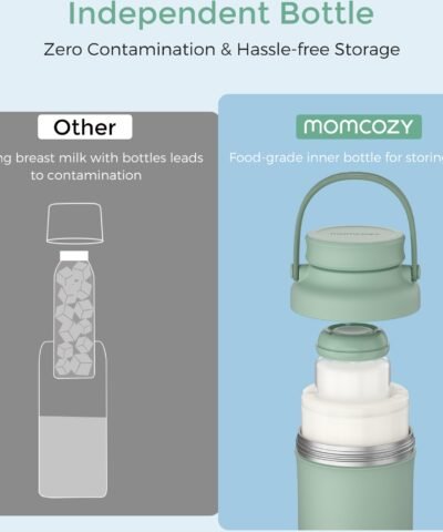 Le refroidisseur de lait maternel Momcozy est conçu pour les mamans occupées en déplaacement, garantissant que votre lait maternel reste frais et riche en nutriments pendant plus de 24 heures. Que vous soyez au travail, en voyage ou que vous profitiez d’activités extérieures, cette solution de refroidissement innovante offre un moyen sûr et pratique de stocker et transporter votre lait sans nécessiter de packs de glace supplémentaires.