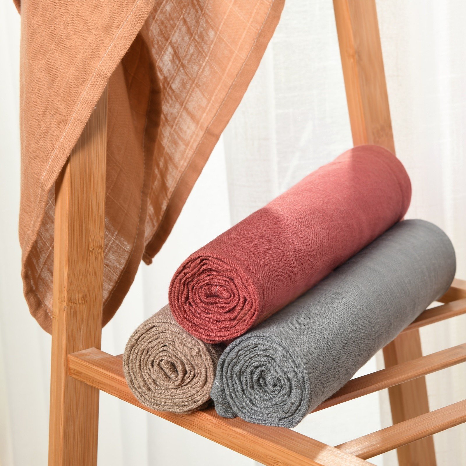 Notre couverture en mousseline est composée de 70,4% de viscose dérivée du bambou et de 29,6% de coton, ce qui en fait un choix écologique et durable.